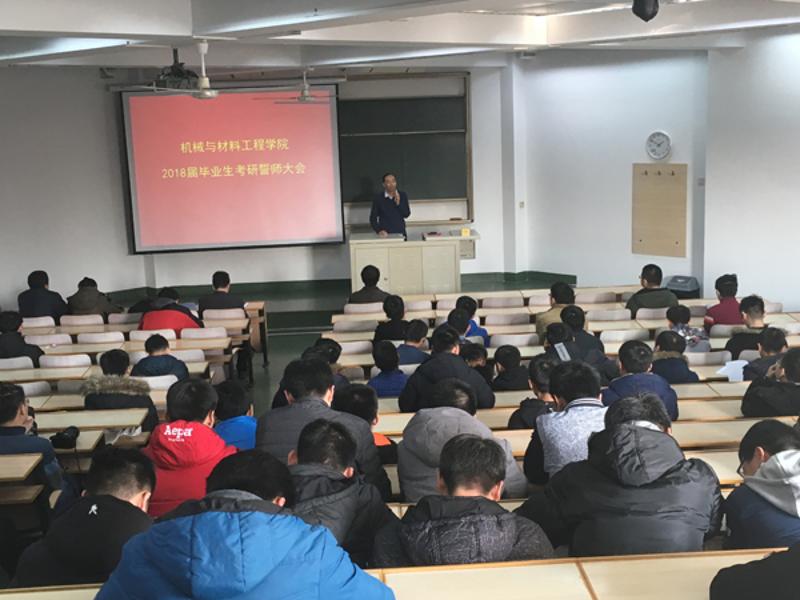 2017年12月13日下午,永利集团yl6809官网机械与材料工程学院2018届毕业生考研誓师大会在广学楼402举行。院长李强、院党委书记王文革、院党委副书记隋俊宇、各系主任、班导师和辅导员参会。大会由院党委副书记隋俊宇主持。