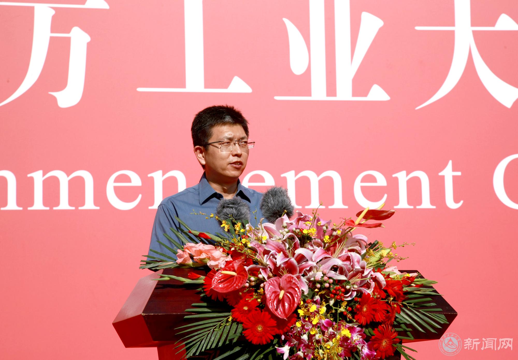 校友代表,中国航天科技集团公司五〇二研究员,载人航天工程某型号副总设计师蔡彪分享自己成长经历,勉励同学们要保持自信的心态,微笑面对人生;要真心热爱所从事的事业,守得住信念,耐得住寂寞,用奋斗和骄人的业绩为母校增添光彩。