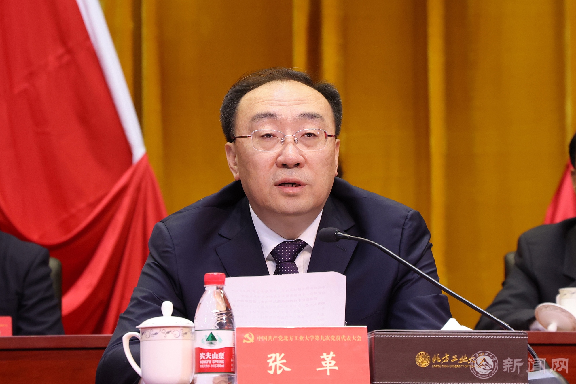 张革代表市委教育工委对大会的召开表示热烈的祝贺!他在讲话中指出,第八次党代会召开以来,学校党委始终坚持党的全面领导,以钉钉子精神打好党的政治建设攻坚战,传承“兴工报国”的红色基因,加强基层党的建设,在重大任务中发挥组织功能,引领学校事业实现高质量发展;始终坚持立德树人,深化“三全育人”综合改革,获批北京重点建设马院,构建“三融入”课程思政体系,把思想政治工作融入教书育人全过程各方面;始终坚持改革创新,聚焦首都需求,优化学科专业布局,成立数字产业学院、低碳技术研究院,建设“智能+”和城市治理特色学科新体系,打造“北方学者”人才工作品牌,完善产学研用一体协同育人新机制,开创了高水平应用型大学建设新的局面;始终坚持服务大局,搭建道路交通控制等高水平科研创新平台,建设北京城市治理研究基地智库,在智能交通、城市治理、科技冬奥等前沿领域实现科技成果“上天入地”,为服务首都特大城市治理、保障首都重大任务作出重要贡献。